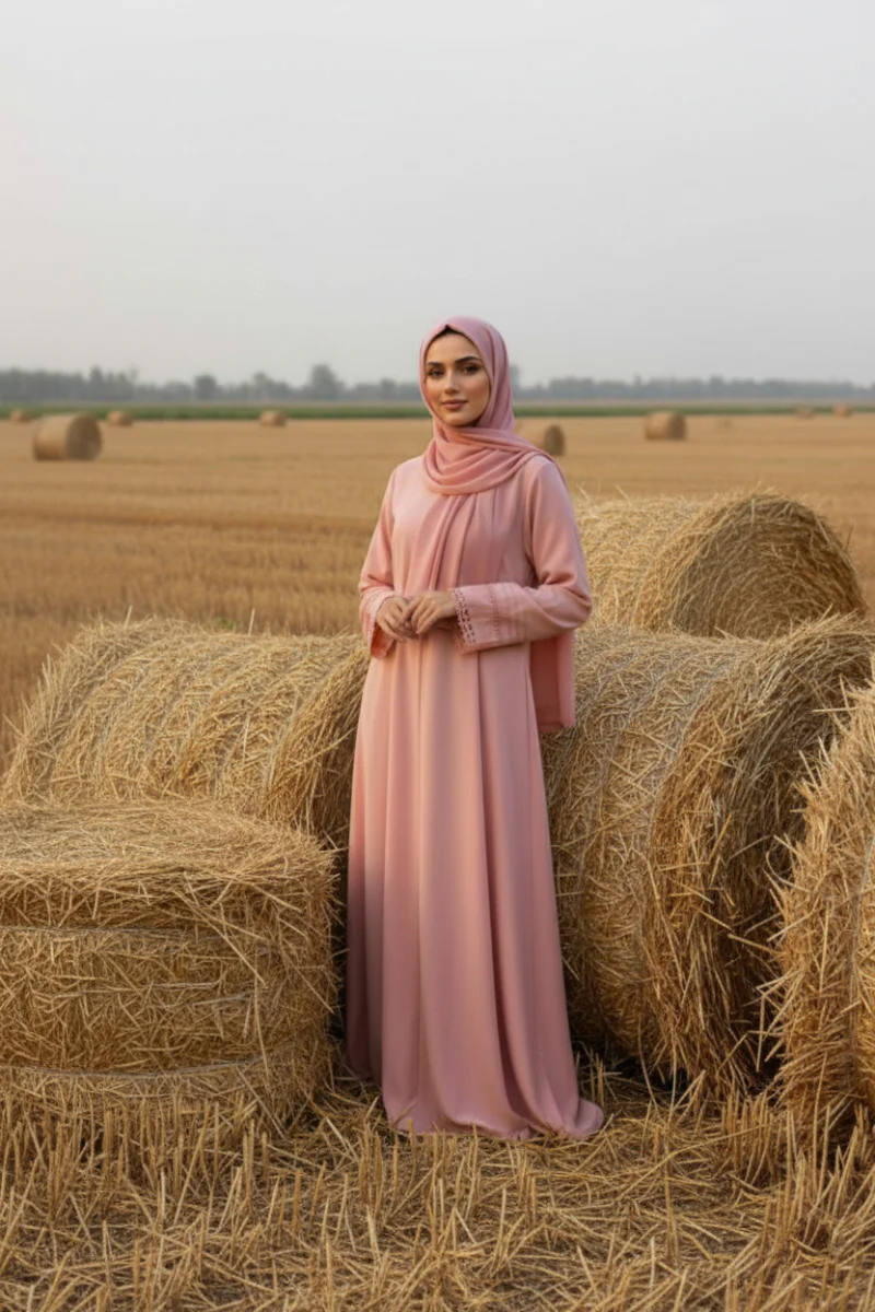 Effortlessly modest and made for everyday wear, Eimaan lace cuff abaya is your go-to choice for simple, refined dressing. Crafted from Wool Peach fabric, it offers a lightweight feel with a graceful fall, perfect for busy days when you need something breathable, modest, and easy to move in.