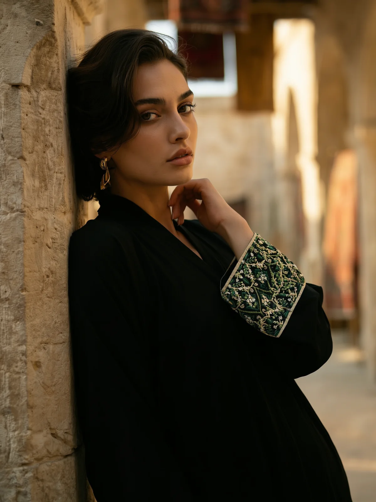 Isra Abaya comes in black, with stunning embroidery done on its sleeves. This Abaya’s elegant design makes it a showstopper piece in your wardrobe makes the entire look graceful.Â